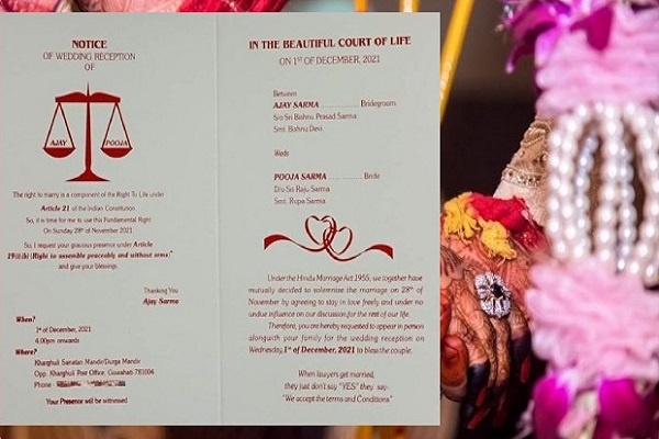 জানা যায়, ভারতের আসামের গুয়াহাটির বাসিন্দা অ্যাডভোকেট অজয় শর্মার সঙ্গে বিশ্ববিদ্যালয় শিক্ষক পূজা শর্মার বিয়ে ঠিক হয়েছে। বিয়েতে অতিথিদের দাওয়াত দিতে সংবিধানের আদলে ঐ কার্ড বানান অজয়। এমনকি অতিথিদের দাওয়াত দেওয়া হয়েছে ভারতীয় সংবিধানের ধারার আলোকে।