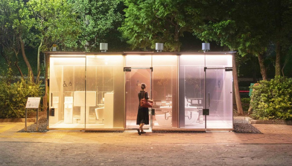 সৃজনশীল প্রকল্পের অংশ হিসেবে স্বচ্ছ গ্লাসের এই টয়লেট দুটি টয়লেট সম্পর্কে মানুষের ধারণাই বদলে দিয়েছে। টয়লেট দুটি ডিজাইন করেছেন প্রিজকার পুরস্কার পাওয়া স্থাপত্য ও নির্মাণ প্রতিষ্ঠান শিগেরু বান। এগুলো সুবিয়া শহরের ইয়োইয়োগি ফুকামাচি মিনি পার্ক ও হারু-নো-ওগায়া কমিউনিটি পার্কে স্থাপন করা হয়েছে।