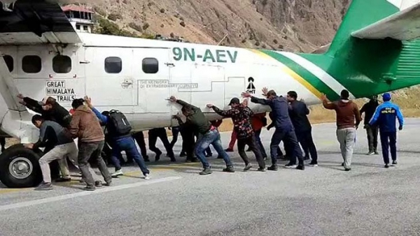 জানা যায়, নেপালের কোল তীর বাজুরা বিমানবন্দরে অবতরণের সময় দেশটির বেসরকারি বিমান সংস্থা তারা এয়ারের একটি বিমানের পেছনের টায়ার ফেটে যায়। এজন্য বিমানটি রানওয়েতেই আটকে যায়। এদিকে রানওয়েতে আটকে থাকা ঐ বিমানের কারণে আরেকটি বিমান অবতরণ করতে না পেরে আকাশেই উড়ছিল। বিষয়টি লক্ষ্য করে বিমানবন্দরের নিরাপত্তাকর্মীদের সঙ্গে যাত্রীরাও বিমানটিকে সরাতে হাত লাগায়।