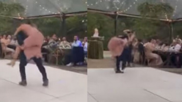 ভিডিওটিতে দেখা যায়, বিয়ের আসরে নব দম্পতি নাচতে গিয়ে পড়ে যান, আর হাস্যকর ভাবে ভাইরাল হয়ে যান সোশ্যাল মিডিয়ায়। নিজেদের বিয়ের আসরে বেশ আনন্দ ও উচ্ছাসের সঙ্গে প্রবেশ করেন নব দম্পতি। প্রবেশের সঙ্গেই নিজের আনন্দ প্রকাশ করতে গিয়ে ড্যান্স ফ্লোরে দুজনে মিলে কোমর দোলাতে শুরু করেন। একটা সময় দেখা যায়, নববধূ উঠে পরে স্বামীর পিঠের ওপর। স্ত্রীকে পিঠে নিয়েই নাচতে শুরু করেন বর। তবে শেষ অবধি ভার সামলাতে না পেরে দুজনে মিলিয়ে হুমড়ি খেয়ে পড়ে যান মাটিতে। আশেপাশে থাকা অতিথিরা তাদের ধরে তোলেন। তবে তার পরও নাচ থামেনা নববধূর।