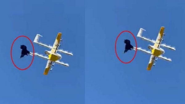 মাঝ আকাশে ড্রোনের সঙ্গে পাখির লড়াই