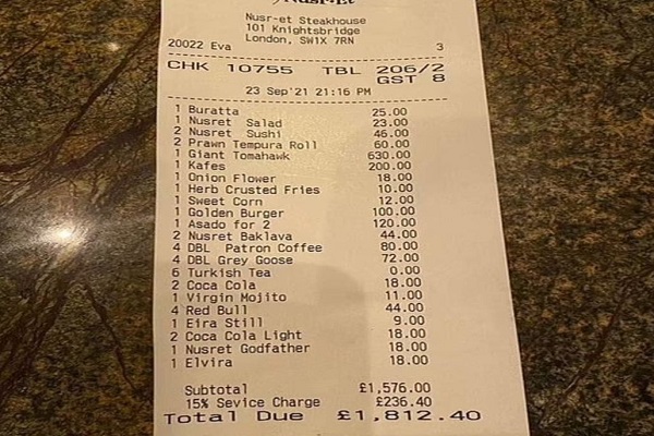 রেস্তোরাঁটির নাম Nusr-Et Steakhouse। ঐ রেস্তোরাঁয় খাবার খাওয়ার পর যা বিল এল, তা দেখে চক্ষু চড়কগাছ তার। কারণ যত টাকা তার ব্যাংকে ছিল, বিলও হলো ঠিক ততটাই। ভাগ্য ভালো যে ব্যাংকে ঐ পরিমাণ টাকা ছিল, নাহলে যে কী হতো, তা ভেবেই এখন ভয় পাচ্ছেন তিনি।