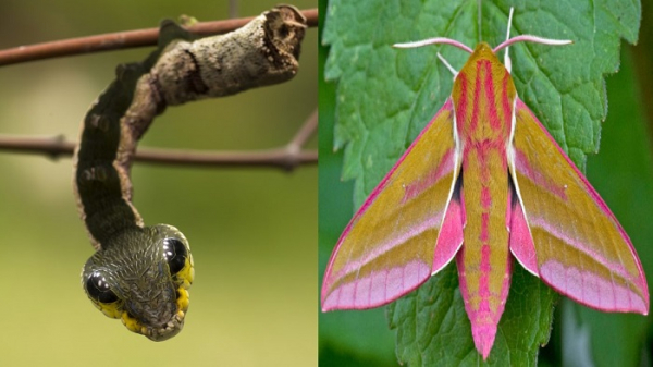 এলিফ্যান্ট হক মথ নামের মথটির বয়স মাত্র এক সপ্তাহ। এক সপ্তাহ পড়েই এটি প্রজাপতিতে রুপান্তরিত হয়ে যায়। বিশ্বের নানা জায়গায় এই প্রজাপতিটি দেখা যায়। অন্যান্য প্রজাপতির মতোই এটি রঙিন ডানার এক প্রজাপতি। যেটি দেখলে মুহূর্তেই আপনার মন ভালো হয়ে যাবে।