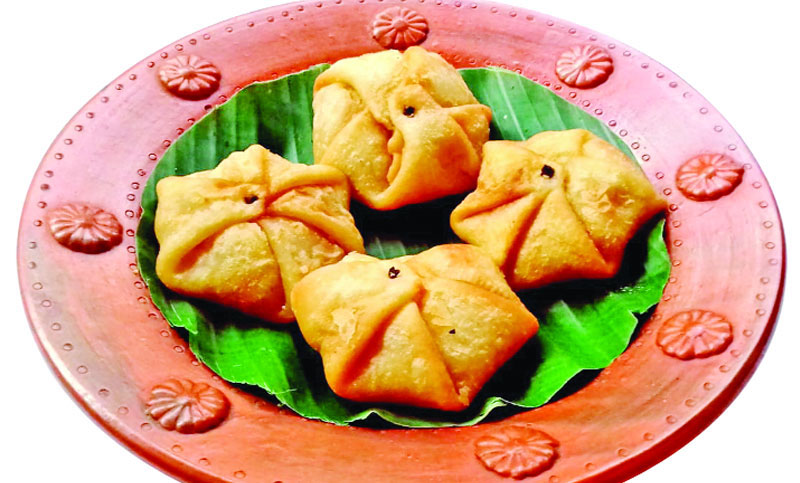 ২. একটি পাত্রে ময়দা, চালের গুঁড়া, ঘি ও লবণ ভালোভাবে মেশান। এতে ধীরে ধীরে গরম জল দিয়ে মাখাতে থাকুন। খামির তৈরি হলে ছোট ছোট অংশে ভাগ করে রুটির মতো বেলে নিন।