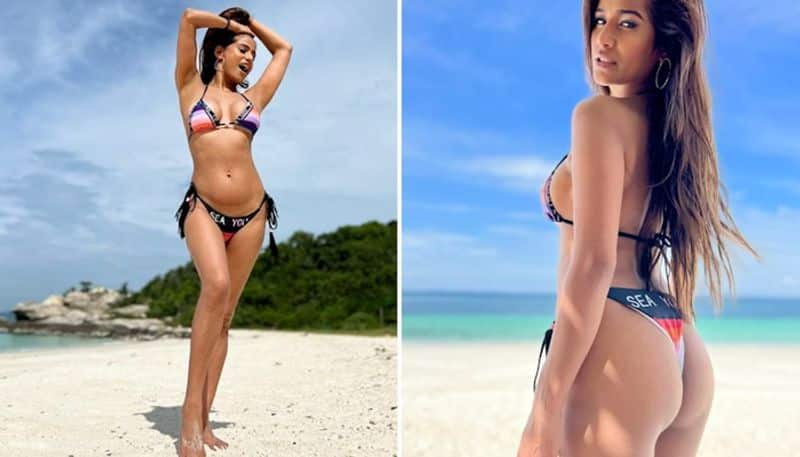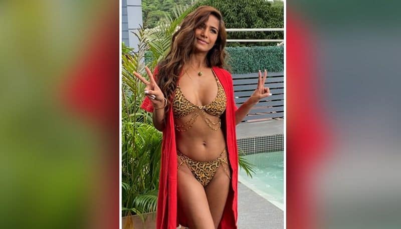 অ্যানিমেল প্রিন্টের বিকিনি পরা অবস্থায় দেখা যাচ্ছে অভিনেত্রীকে তা ছিল পারফিউম ব্র্যান্ডের জন্য । এখানে, তিনি পাপারাজ্জিদের জন্য পোজ দিয়েছেন কারণ অভিনেত্রী পুলের পাশে ব্র্যান্ডের জন্য শুটিং করছিলেন।