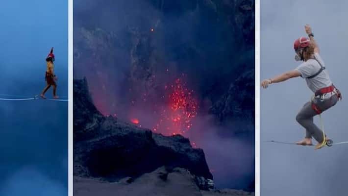 নিচে জ্বলন্ত আগ্নেয়গিরি তার ওপর দিয়েই দঁড়ি-পথে হেঁটে গ্রিনেজ রেকর্ড, দেখুন হাড়হিম করা ভিডিওটি