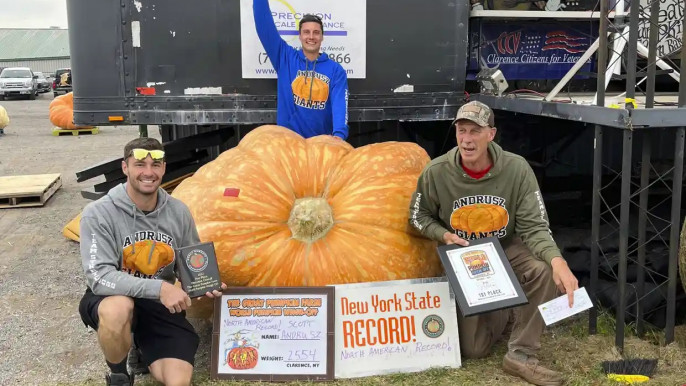 অনেক নির্ঘুম রাতের পর সাফল্যের মুখ দেখা এই কৃষকের নাম স্কট অ্যান্ড্রুজ। তিনি একজন অবসরপ্রাপ্ত বাণিজ্যিক চাষী। ১,১৫৮ কেজি'র (২,৫৫৪ পাউন্ড) মিষ্টিকুমড়া ফলিয়ে তিনি নতুন মার্কিন রেকর্ড গড়েছেন।