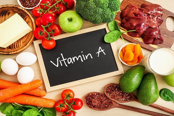 গাজর, ভুট্টা, আপেল, পাকা আম, পাকা পেঁপে, লাল আঙুর, ক্যাপসিকাম, রাঙা আলু, মিষ্টি কুমড়া, লেটুস পাতা, সবুজ শাক-সবজি, টমেটো, সজনেপাতা ইত্যাদি। মাছের মধ্যে মলা ও ঢেলা মাছে পর্যাপ্ত ভিটামিন এ আছে। এছাড়া মাখন, ডিম, কলিজা, কডলিভার অয়েল, ঘি, দুধ, গরু-খাসির মাংসে ভিটামিন এ রয়েছে।