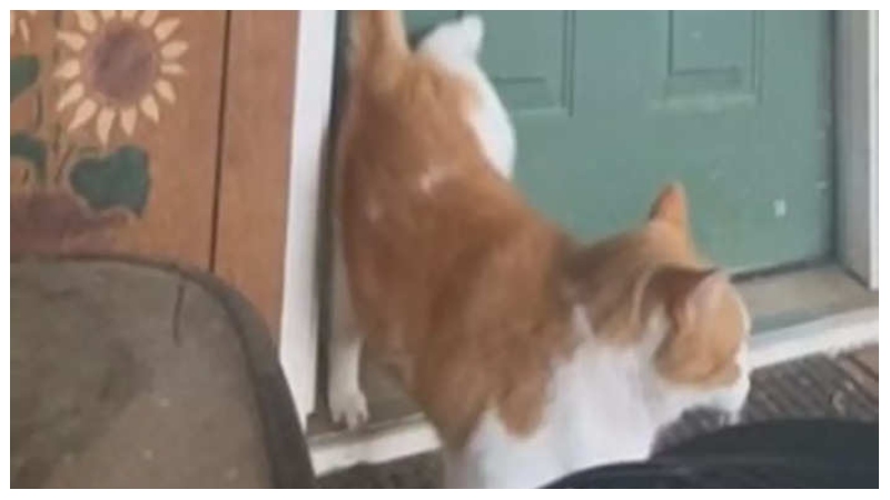 ভিডিওটিতে প্রথমেই বিড়ালটিকে একটি বন্ধ দরজার সামনে দাঁড়িয়ে থাকতে দেখা যায়। এরপর কিছুক্ষণ পর সে পেছনের এক পা তুলে দরজায় ঠকঠক শব্দ শুরু করে। ভিডিওর সঙ্গে স্ক্রিনে দেওয়া লেখাটিও এক অন্য মাত্রা যোগ করেছে।
