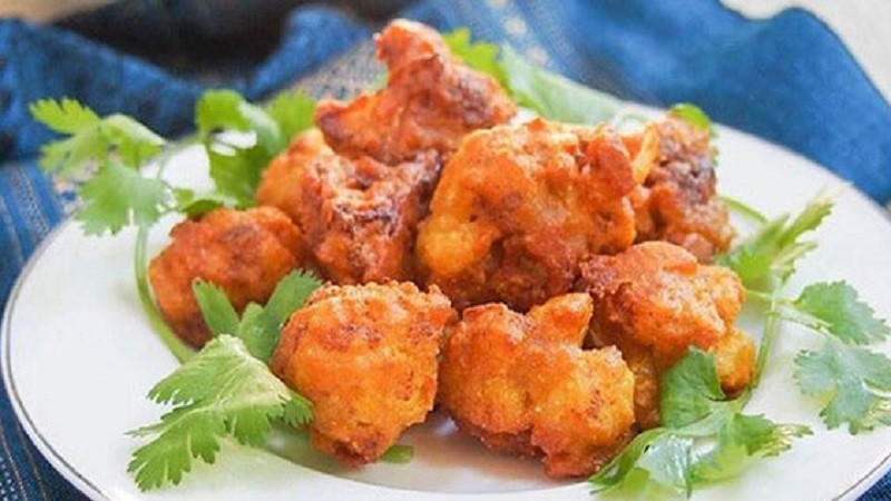 উপকরণ: দুইটি মাঝারি সাইজের ফুলকপি, দুই কাপ ময়দা ও কর্নফ্লাওয়ার দুইটি ডিম, কয়েকটি কাঁচা মরিচ কুচি, সয়া সস এক চামচ, স্বাদ অনুযায়ী চিনি, স্বাদমতো লবণ, ভাজার জন্য সাদা তেল।