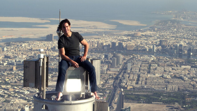 ২০০৪ সাল থেকেই দুবাইয়ের ৮৩০ মিটার উঁচু বুর্জ খলিফা বিশ্বের সবচেয়ে লম্বা স্কাইক্র্যাপারের খেতাব ধরে রেখেছে। ২০১১ সালে ইথান হান্ট তথা টম ক্রুজ ওই ভবনে চড়ে বসেন, কয়েকটা জানালা ভাঙেন, ভবনের গা থেকে দড়ি ধরে ঝোলেন। সবই করেছেন কেবল সিনেমার স্বার্থে। এ দৃশ্যের শ্যুটিংয়ের আগের দিন টম ক্রুজ পরিচালক ব্র্যাড বার্ডকে বলেছিলেন তিনি কোনো নিরাপত্তাব্যবস্থা ছাড়াই ভবনটির শীর্ষে উঠতে চান। সিনেমার প্রমোশনের জন্য তোলা ওই ছবি দেখলেই অনেকের হয়তো ভয়ে বুক কাঁপবে।