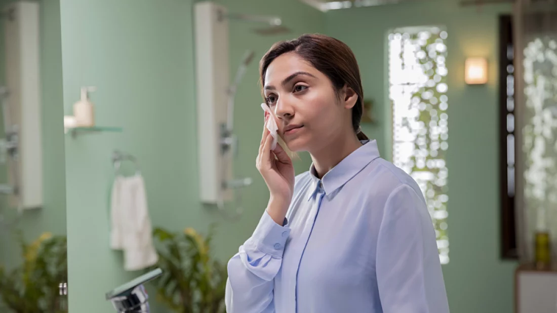 রোদ থেকে ঘেমে এসিতে ঢোকার পর মুখে ভালোভাবে জলের ঝাঁপটা দিন। ফেসওয়াশ দিয়ে মুখ ধুয়ে নিতে পারলে আরও ভালো। এরপর শুকনো টিস্যু দিয়ে চেপে চেপে অতিরিক্ত জল মুছে নিন। ওয়েট টিস্যুর সাহায্যেও মুখ মুছে নিতে পারেন। অফিসের ড্রয়ারে ময়েশ্চারাইজার ও বডিলোশন রাখুন। মুখ পরিষ্কার করার পর ময়েশ্চারাইজার লাগান।